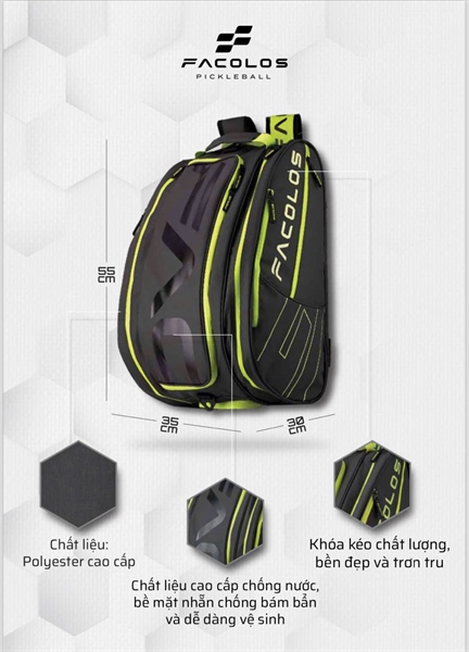 - Thiết kế thông minh: Nhiều ngăn chứa được bố trí hợp lý, bao gồm ngăn đựng vợt, ngăn đựng giày và ngăn phụ kiện, giúp người dùng dễ dàng sắp xếp và truy cập đồ dùng.